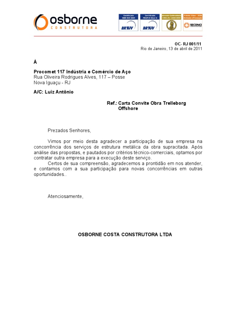 Carta Agradecimento Trelleborg Offshore via pt.scribd.com